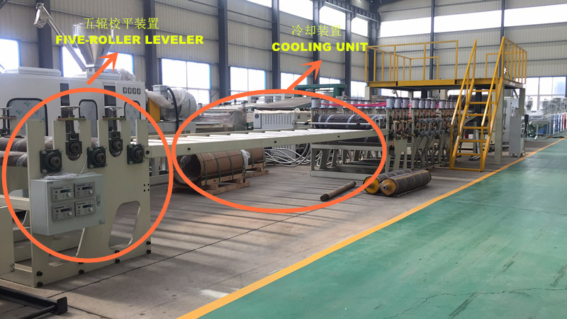 青島東方之星的一套完整的PE鋁塑板生產線由SJ150×33單螺桿擠出機、復合模頭、三輥壓光機、雙面鋁卷放料架、雙輥熱復合機、八輥熱復合機、六輥冷卻導輥架、覆膜機、四輥牽引機和切割機等設備組成,通過PLC系統(tǒng)實現(xiàn)整線智能化控制。