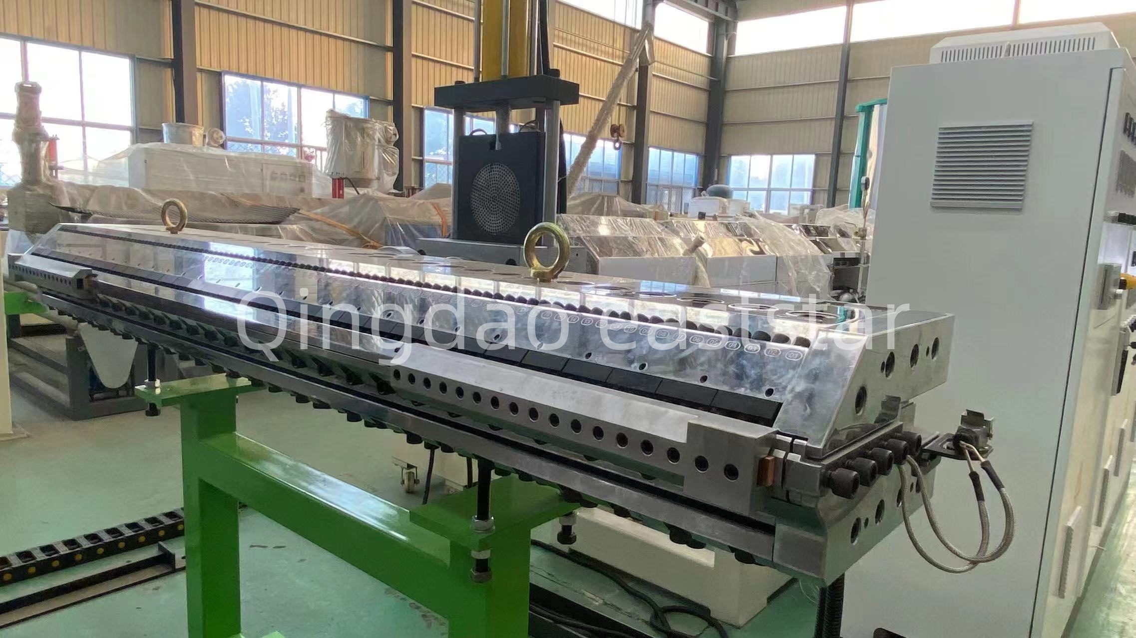 PE排水板生產(chǎn)線的模具系統(tǒng)采用衣架式流道設(shè)計(jì),模具寬度1650mm,可生產(chǎn)0.8-1.2mm厚度的單層排水板。模具流道表面鍍鉻處理,拋光至鏡面效果,型腔粗糙度Ra0.1um,模唇粗糙度Ra0.05um。兩輥成型裝置配備Φ450×1700mm輥筒,輥面硬度HRC58-62,鍍鉻厚度0.08mm,通過(guò)特殊多流道設(shè)計(jì)確保溫度均勻。這些專(zhuān)業(yè)配置保障了
